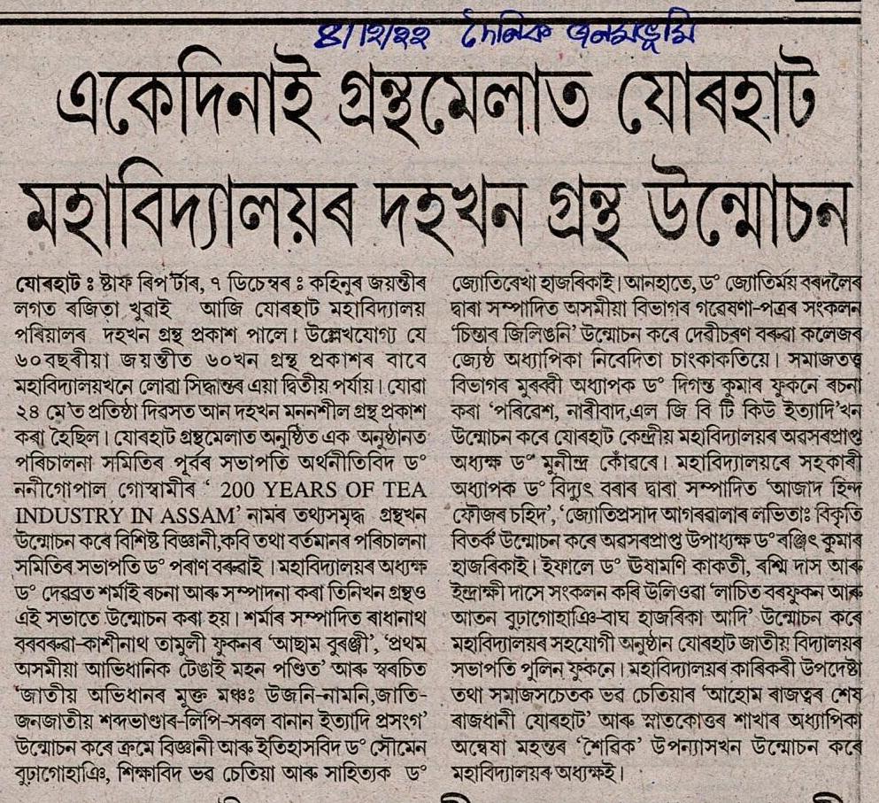 http://jorhatcollegedigitallibrary.in:8080/xmlui/handle/123456789/116| Title: | Book Release Ceremony on the occasion of Kohinoor Jayanti in Jorhat Book Fair |