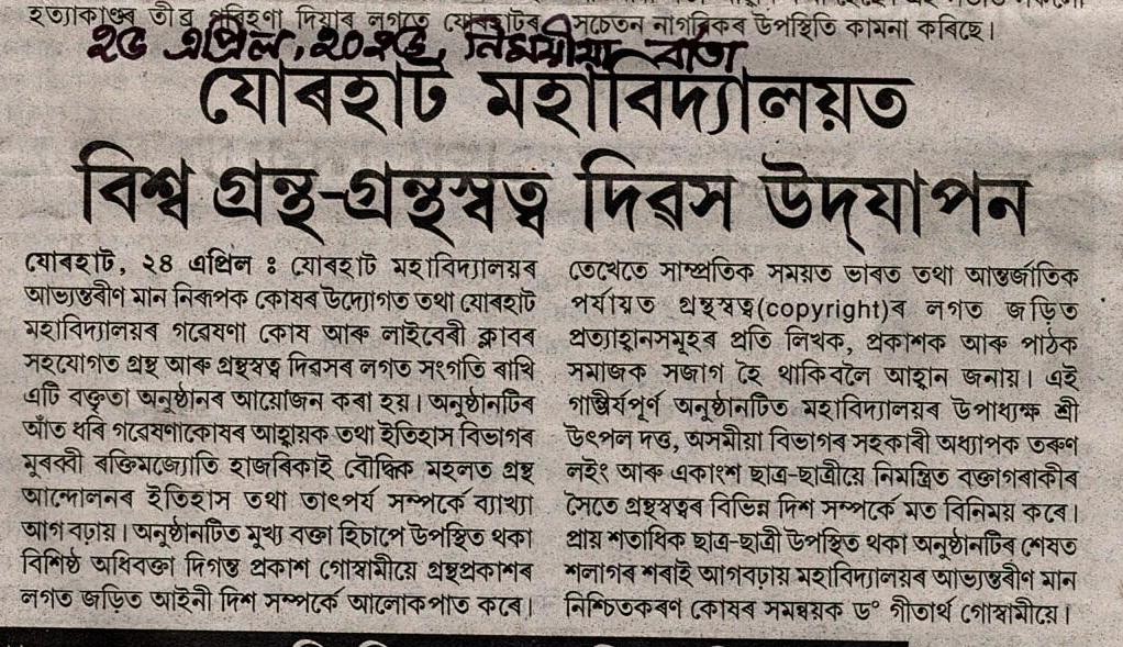 http://jorhatcollegedigitallibrary.in:8080/xmlui/handle/123456789/141| Title: | World Book & Copyright Day |