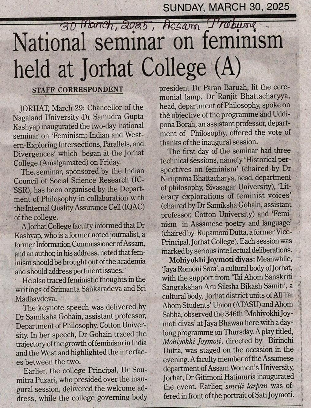 http://jorhatcollegedigitallibrary.in:8080/xmlui/handle/123456789/67| Title: | National Seminar on Feminism Sponsored by ICSSR |